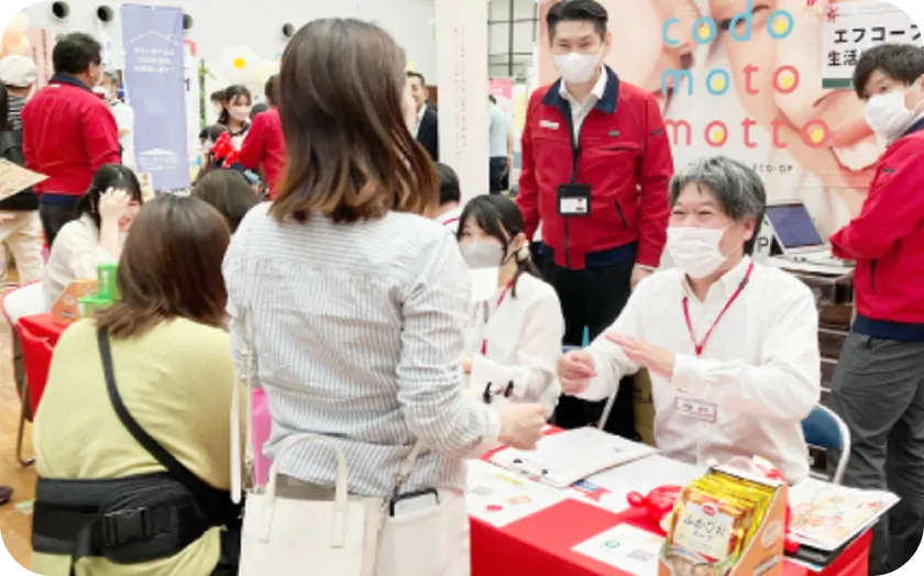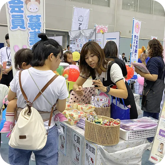 子育て世代への認知拡大、新規組合員加入(契約)を増やすために出展。